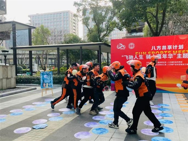 12月25日下午,杭州余杭区五常街道邱桥社区党群服务中心北门口气氛热烈、欢笑不断,“飞驰人生”骑士嘉年华趣味运动会在这里激情开赛。众多“骑士”们集结于此,以团队协作与个人风采点燃了冬日的社区活力。